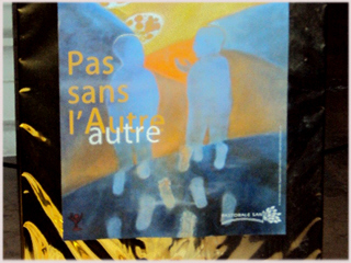 Les bénévoles de la pastorale de la Santé ont préparé ce chemin parsemé de pas dorés -auxquels ont été ajoutés les pas avec intentions- chemin qui mène à l'affiche "Pas sans l'Autre" pour nous rappeller, s'il en était besoin, qu'au jour du jugement, le Seigneur nous dira : "Ce que vous avez fait au plus petit d'entre les miens, c'est à moi que vous l'avez fait".