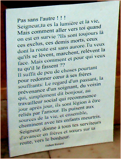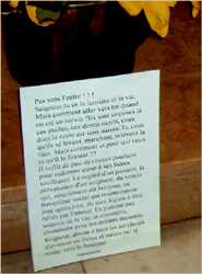 Ci-contre le texte d'une très belle prière qui a été placée elle aussi au pied de l'autel.