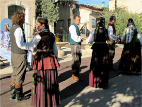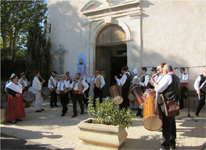 Une haie d'honneur pour la sortie de l'église: les traditions populaires vont être à l'honneur sur la place de l'église: d'abord avec le groupe provençal LI CANESTELETO et ses nombreux tambourinaïres.
