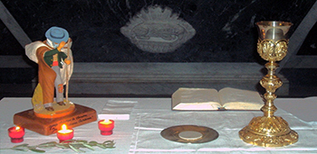 EGLISE SAINT-MICHEL _ A la messe de 09H00 ce matin, le père François-Régis, curé de l'Unité Pastorale Roquepertuse, a béni un magnifique Santon "Coup de Mistral" du santonnier aixois Fouque, représentation créée en 1952 d''un berger provençal luttant contre le mistral.