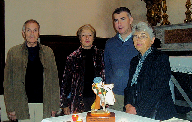Les membres du groupe Lei Pastoureu Ventabrenen, ci-dessus, et avec le père François-Régis, ci-dessous...
