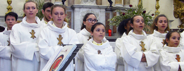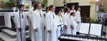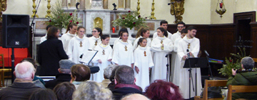 Les petits Chanteurs sont en aube blanche pour les Chants sacrés de la première partie du program-me.
