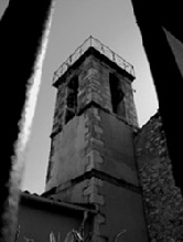 Contre la face Nord du clocher, une loge protège les contrepoids de l'horloge.