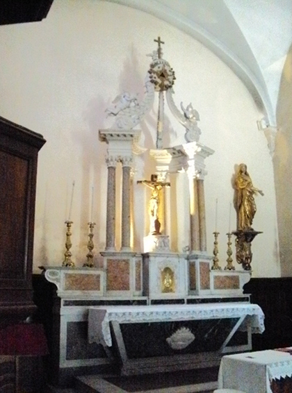 Monsieur d'Anglesy offre en 1766 un maître autel en bois doré transféré par la suite dans une paroisse de la ville d'Aix. Il fut remplacé par un autel en marbre gris constitué de six colonnes soutenant une console ajourée, flanquée de de deux anges triomphants. Le tabernacle porte deux têtes d'anges en marbre blanc. Cet autel fut bénit en 1848 par Mgr Carbonel. En 1754 la table de communion fut achetée à l'église du collège des Jésuites à Aix pour 140 francs.