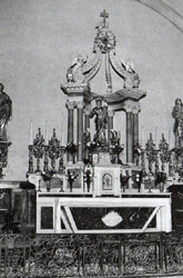 Aujourd'hui, la table de communion n'existe plus, mais on reconnait bien l'autel de marbre gris et ses six colonnes, bénit en 1848.