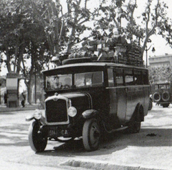 "Après Pâques...on transportait les légumes au marché. A 3H du matin on enlevait tous les sièges pour installer les cageots de primeurs, les paniers de fraises et en vrac les pastèques. Les paysans déposaient le soir les cageots sur le bord de la route... et M. Mauvilly les ramassait à 3H du matin en partant au marché.