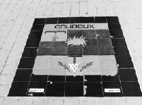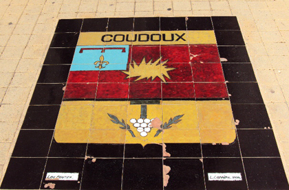 Le blason de Coudoux en tuiles de céramique, sur le parvis de l'église Saint-Michel : l'église est à l'origine de la commune de Coudoux...