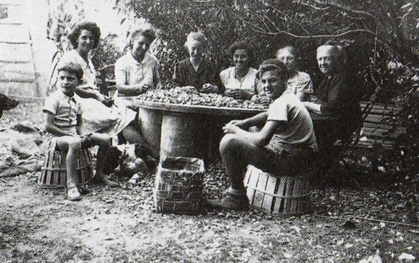 Josette Lapierre : « Toute la famille se réunissait pour « descarager », pour ôter les amandes de leur bogue. L'on se retrouvait, toutes générations confondues, autour de la table, ce qui transformait ce travail pas trop pénible mais assez difficile, en un moment de convivialité chaleureuse. Puis nous mettions les amandes à sécher dans le jardin au soleil, sur un sac ; nous les vendions soit à des négociants, soit à des confiseurs d'Aix qui nous les achetaient avec la coque. A Aix, des confiseries possédaient un cassoir, le cassage était un travail peu payé… ce sont les hommes qui cassaient. Les femmes qui triaient étaient parfois payées avec les coquilles qu'elles récupéraient pour faire leur feu. » (p. 53)