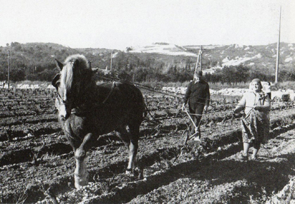 Chacun récupérait ses sacs de blé, la paille et le « poutras » que l'on donnait aux poules pour faire picorer. La paille servait pour les chevaux. (p. 50)