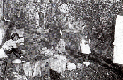 Jour 3 : on rinçait le linge et on l'étendait ; une fois sec, on l'étirait, on le pliait, on le rentrait pour le ranger dans les armoires. (p.29)