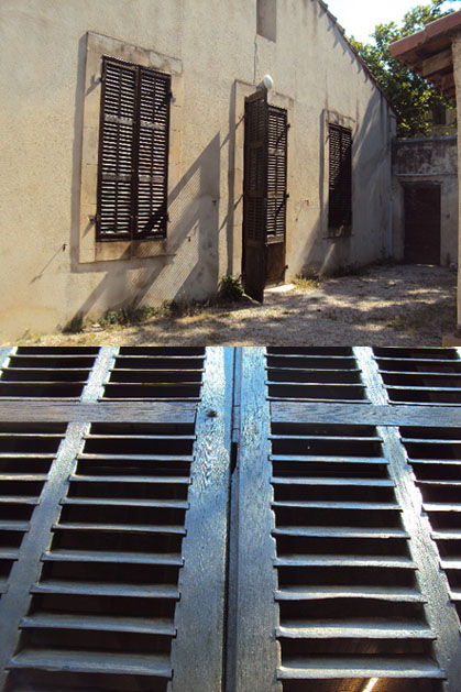 Tous les volets de bois à rénover avec application de lasure.