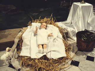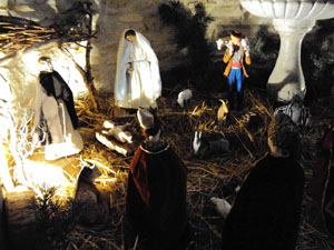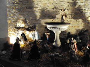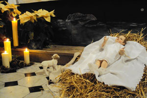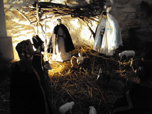 Reproduction de la crêche de Noël devant l'autel pour la cérémonie