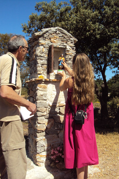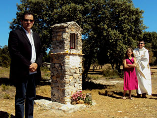 Cinquième étape, 28 mai 2011 : la bénédiction par le père MICHAUD, curé de La Fare, après l'inauguration en présence de Mr GUIROU, maire de La Fare, et la mise en place dans l'oratoire de la statue de saint Jacques par la jeune CHLOE.