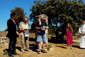 Alex DELFINO proclame le texte -à l'ancienne- de l'inauguration, qui est ensuite mis dans un tube lui-même déposé dans la niche de l'oratoire.