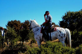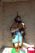 Un cavalier solitaire attend l'inauguration. La statue de saint Jacques, réalisée par le maître santonnier G. BUCHY, attend la bénédiction de son oratoire, avant de regarder passer les pèlerins en route vers Compostelle...