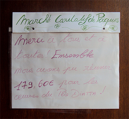 Cette année la somme recueillie ira aux oeuvres du Père Diatta (chapelle, dispensaire et scolarisation des filles de sa paroisse). Toutes nos pensées vont aux futures bachelières qui je l'espère trouveront plus tard un travail, vivront dignement et seront respectées.
