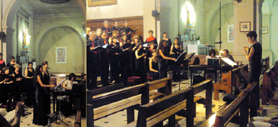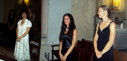 Fin du concert : la soprano Lucille PESSEY et l'Alto Emilie DANGLADE sont longuement applaudies ainsi que Magali GUARINO qui les a accompagnées à l'orgue (à g.).