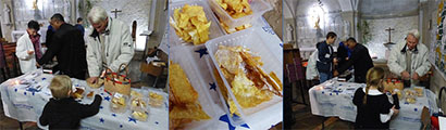 Après le mot du Président Delfino, gâteaux et oreillettes apportés par des paroissiens sont vendus au profit du Secours Catholique.