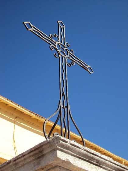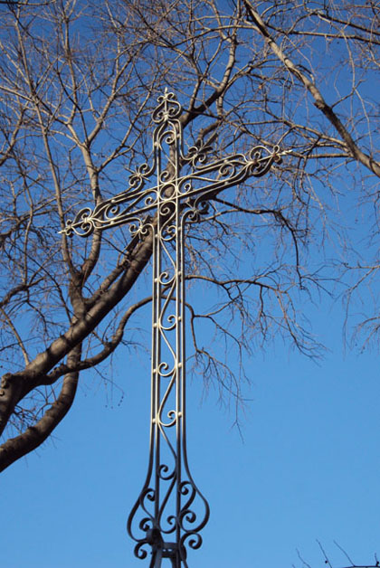 Située devant la chapelle Sainte-Rosalie, cette croix aurait remplacé une croix primitive de bois (coût 312 livres: aux moindres frais avait demandé la population) plantée en janvier 1781 pour clôturer une mission. La croix actuelle, au moins pour sa partie ferronnerie, daterait de la 2nde moitié du XIXe siècle. Les inscriptions sont illisibles.