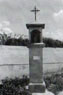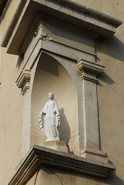 Sous une statue de la Vierge, on peut lire : « Notre-Dame immaculée. Protégez-nous ».