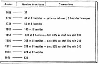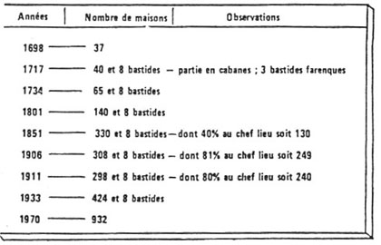 Tableau des habitations -maisons et bastides- depuis le XVIIe siècle