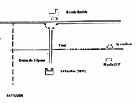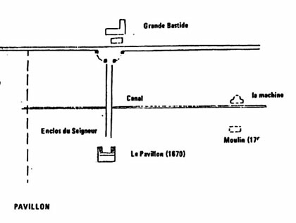 Sur le plan, on remarque la proximité de la Grande Bastide et du Pavillon, de part et d'autre du canal, non loin du Grand Moulin, à l'origine propriété du seigneur de La Fare.