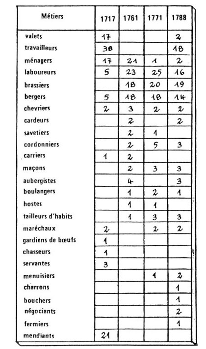 Métiers exercés à La Fare au XVIIIe siècle (p.92)