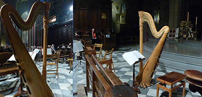 Le Quatuor à cordes "Les Archets du Roy René" (ci-dessus) et l'Ensemble vocal "Mel Bonis" avec Claire Lefur à la harpe, direction J.F. Senart (ci-dessous)