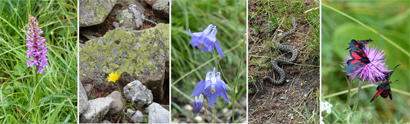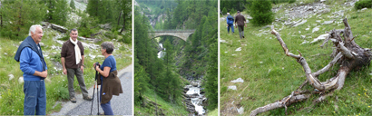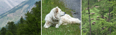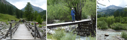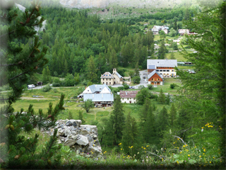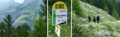 Une randonnée pédestre le long du ravin de la Moutière, jusqu'aux chutes d'eau qui encadrent route départementale, en dessous du col ; au milieu d'une nature à la fois majestueuse et exhubérante par ses tons de vert et la mutitude des fleurs, nous aurons dérangé - par mégarde - une vipère, rencontré des chiens patou gardant un large troupeau de moutons ensonnaillés, et plusieurs marmottes dont l'une siffait avec insistance notre arrivée à ses congénères... (Pour la transhumance, les bêtes qui peuvent porter une cloche sont ensonnaillées; les dralhaus, grosses clapes et gros redons sont placés sur les bêtes les plus fortes, les colliers ronds en bois sont souvent décorés; dans la montagne, on entend le troupeau bien avant son arrivée.)