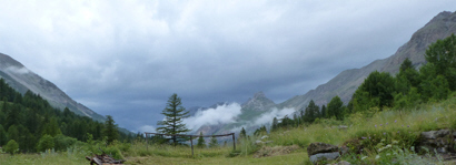 BAYASSE Alt.1800m_Nous avions déjà visité en 2013 ce hameau, situé à 35km de Barcelonnette, sur la D902 qui mène au Col de la Cayolle par la vallée du Bachelard. Retrouvé des paroissiens de la Fare juste à temps pour visiter la petite église Saint-Louis, avant que n'éclate un gros orage. Après le déjeuner, le soleil nous accompagnait sur le sentier qui mène vers le Col de la Cayolle.