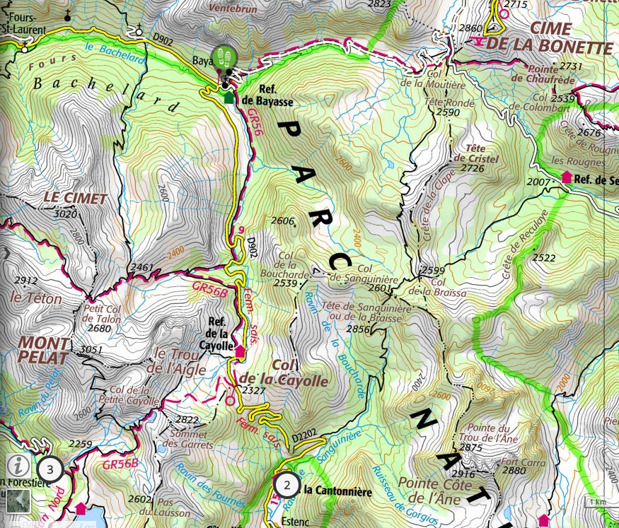 1 → Vers le col de la Cayolle, rochers, cascades, moutons et marmotte.