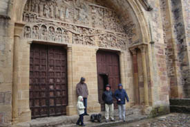 Les pèlerins, devant le tympan du Jugement dernier, chef doeuvre de l'art roman, inscrit désormais au patrimoine de l'Humanité.