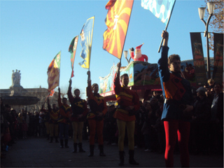 Les Sbandieratori del Palio d'ASTI, ont, quant à eux, décoré le ciel aixois avec leurs étendards multicolores et enchanté les spectateurs par leur adresse. Ces lanceurs de drapeaux perpétuent lors des Fêtes du Palio d'Asti, en Piémont, les célébrations médiévales de saint Second d'Asti. Datant du XIIe siècle, ce palio est le plus ancien d'Italie. Cette Bravade aixoise fut une belle fête.