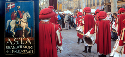 Le Palio d'Asti est le plus ancien d'Italie (200 ans avant celui de Sienne). Chaque quartier possède ses oriflammes. Après la bénédiction des chevaux, musiciens et lanceurs de drapeaux animent les rues. La fête culmine avec la course de chevaux montés "à cru".