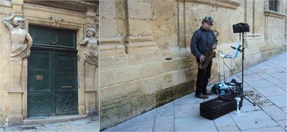 Rue maréchal Foch, les Atlantes de l'Hôtel d'Arbaud (XVIIe s.), peuvent entendre la mélodie du saxophoniste soitaire dont les notes s'envolent place de l'Hôtel de Ville.