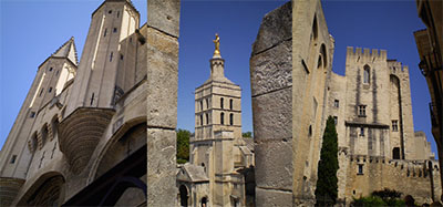Cathédrale Notre-Dame-des-Doms en Avignon (ci-dessus, au centre) : l'édifice, qui jouxte le Palais des Papes, est un chef d'oeuvre de l'art roman provençal datant de 1150. Les Noëls de Notre-Dame des Doms sont des chants provençaux de la période 1580 à 1656, perdus de vue puis retrouvés en 1800 dans les vieux documents d'un avocat. Ils ont été publiés en 1825 et en 1981, transcrits en graphie mistralienne.