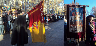Les bannières de Lei Farandoulaire Sestian, du Palio d'Asti n(ci-dessus), du Condor, et de Lou Roudelet dei Mielo (ci-dessous)...