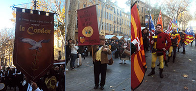 Les Sbandieratori del Palio d'ASTI, ont fait danser leurs étendards multicolores dans le ciel provençal et enchanté les spectateurs. Ces lanceurs de drapeaux perpétuent lors des Fêtes du Palio d'Asti, en Piémont, les célébrations médiévales de saint Second d'Asti. Datant du XIIe siècle, ce Palio est le plus ancien d'Italie.