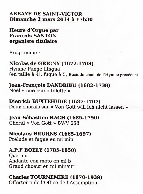 L'Heure d'Orgue, dimanche 02 mars 2014