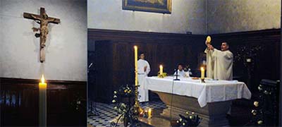Vigile pascale : rites de la Lumière, de la Parole, du Baptême, et célébration Eucharis-tique en l'église Saint-Sauveur de La Fare, spécialement fleurie par les paroissiens.