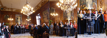 Salon d'honneur de l'Hôtel de Ville : remise des Prix aux lauréats du concours de création, et Médailles de la ville à des Santonniers et organisateurs du Salon.