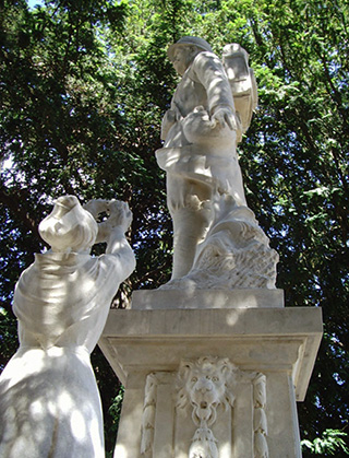 Une Arlésienne offre une couronne de laurier au Poilu débout sur un piéfdestal où est gravée l'inscription :