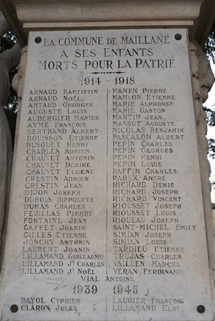 Il est bon de rappeler que 55 Maillanais sont tombés au champ d'honneur, leurs noms sont gravés sur le Monument aux Morts.