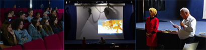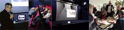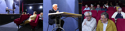 Les conférenciers - de haut en bas ↑ : Marc MORILLON (Service de Santé) ; Alain TOUZA (les hommes de Dieu dans la guerre) ; Jeanne-Marie SAUVAGE-AVIT (le rôle des femmes en 14-18) ; Jean-Yves LE NAOUR (la légende noire du XVe Corps) .