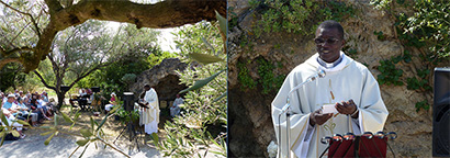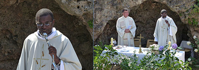 Fin de la messe, le Père DIATTA relate les bonnes oeuvres qu'il poursuit dans sa paroisse de Youtou, en Casamance, et remercie les paroissiens pour leur accueil.
