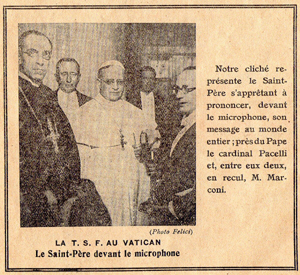 la T.S.F. utilisée au Vatican par le pape Pie XI, sous l'oeil attentif de