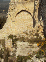 "La chapelle, aujourd'hui envahie par les ronces dans l'édifice démantelé, servit primitivement d'église paroissiale. Elle fut dédiée à la sainte Croix, puis à saint Denis à cause d'une belle relique [la mâchoire inférieure] de ce saint que la reine Jeanne [1326-1382] y déposa.