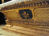 Buste de saint Denis, renfermant la mâchoire inférieure de l'illustre martyr de Paris, relique donnée par la reine Jeanne. Des chiens géminés supportent la vieille image désignée sous le nom de San Danis dei chins, parce qu'à Ventabren le saint est invoqué contre la rage.'' (p.414)