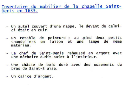 Voir chapelle Saint-Denis en 1633 : Inventaire du mobilier