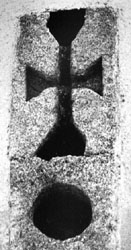 pierre sculptée portant des motifs de coquille Saint-Jacques, témoignage peut-être d'une étape sur le chemin de Compostelle.